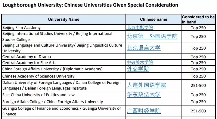 对这些大学来说,只要你的本科学校不在该校的list之内,无论你有多么优秀的成绩和PS,这些英国大学也不会录取你的(当然不排除有极小概率事件)。