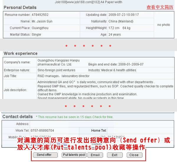 ”,可将简历保存在公司人才库中,方便以后再次查阅该简历。